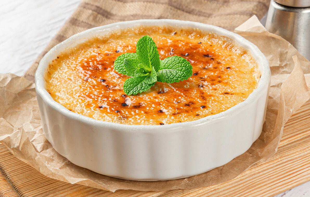 Erid: 2SDnjdbMUR6 Крем-брюле — традиционный французский десерт из заварного крема. Но не простой. Нежный и тягучий крем скрывается под хрустящей сахарной корочкой, которую нужно аккуратно разбить. В этой статье делимся классическим рецептом десерта. Но для начала ловите несколько полезных советов. Вам понадобятся: сливки 33% – 500 мл; яйца – 5 шт.; сахар – 75 г; ванильная пудра – 1 ч. л.; тростниковый сахар – 2 ст. л. Готовим! Шаг 1 Налейте сливки в сотейник, добавьте к ним 1 столовую ложку сахара, перемешайте и поставьте на огонь. Не нужно доводить до кипения, подогрейте лишь до появления пара. Шаг 2 В отдельной миске с помощью венчика смешайте до однородной массы 5 желтков, оставшийся сахар и ванильную пудру. Шаг 3 В подготовленную массу влейте подогретые сливки с сахаром и перемешайте всё до однородности. Шаг 4 Разлейте массу по формочкам и отправьте в духовку на 50 минут при 100 °C. После приготовления дайте десерту остыть и уберите в холодильник минимум на 4 часа. Шаг 5 Перед пода