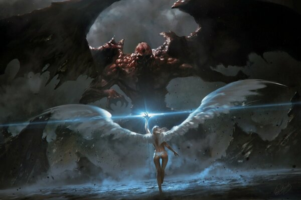 Демон резко обернулся, и я увидел бородавчатую козлиную морду. В лицо дохнуло смрадом и гнилью. Вдруг очертания дьявола поплыли, и через несколько секунд он превратился в ангела — румяного юношу в белой тунике и с крыльями за спиной.