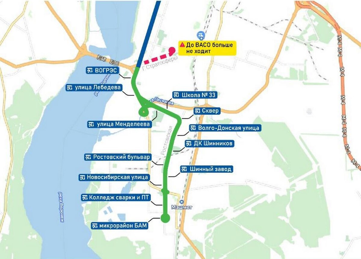 Путь следования автобусного маршрута №44 по Воронежу скорректируют