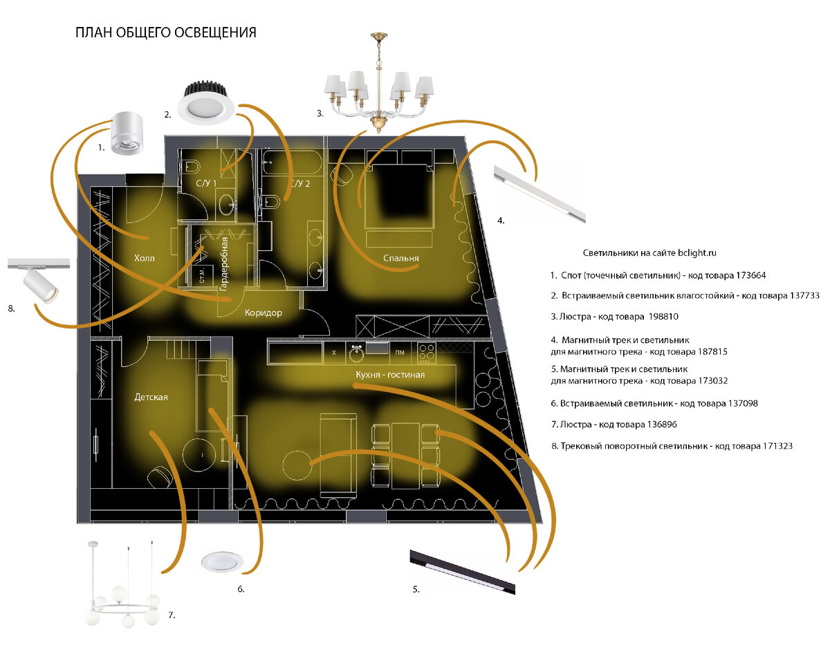 Освещение гостиной зоны.