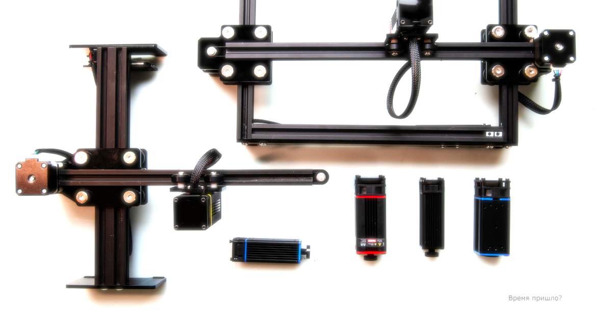 Сборка гравера заняла буквально пять минут. Все основные узлы уже поставлялись в собранном виде. Нужно было просто соединить кинематику оси X и Y вместе с помощью гаек. Ниже на фото изображено устройство в собранном виде.