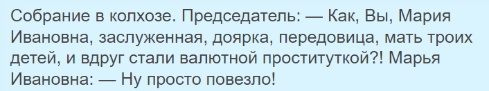 Из той же серии, как воспитанные таким вот образом дети жалуются на бедную жизнь, а тем, кто им объясняет, что жить надо по средствам, отвечают, что, мол, "вам повезло, что у вас детей нет", "вам повезло, что у вас квартира от бабушки" и тому подобное. Второе - ладно ещё, хотя зачастую у говорящего так имеется в анамнезе вполне живая бабушка с квартирой (то есть тут тоже просто повезло приобретает негативный оттенок), а первое - чистый анекдот. Хотя совершенно логично, что человек, уверенный в том, что его действия никак не влияют на его жизнь (то есть не слышавший об ответственности за свои поступки) сперва, mil pardon, присунет куда-то (или впустит в себя), а потом уже задумается. Или даже не задумается - ибо нечем. Будет стенать, что ему (ей) государство не желает "лужайку" обеспечивать - хотя меры поддержки семей с детьми в нашей стране огромные и фактически беспрецедентные. Хотя, казалось бы, вот о чём ты думал прежде, чем "зайку" заводить?