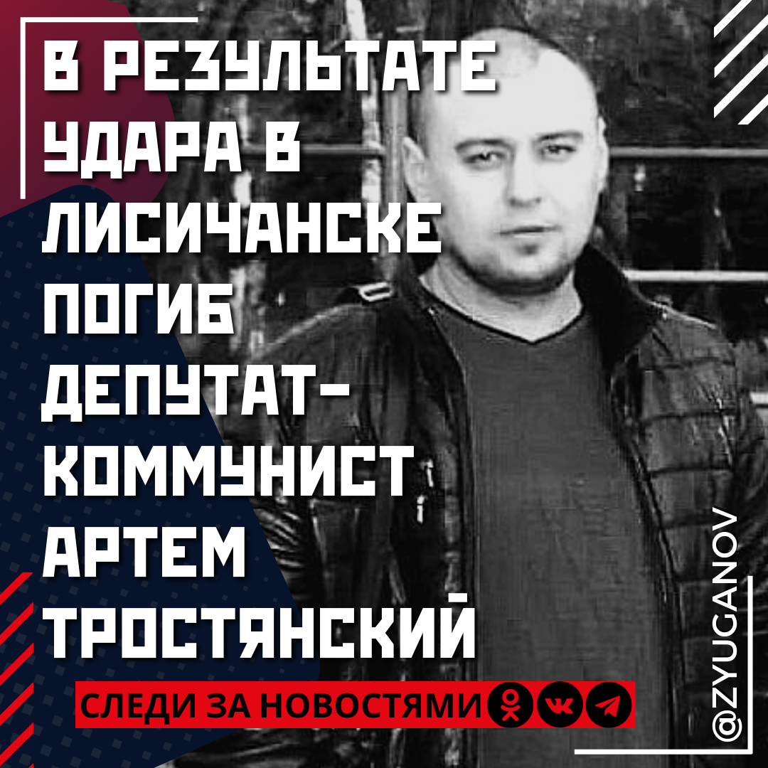 С глубоким прискорбием сообщаем о скоропостижной кончине второго секретаря Лисичанского горкома КПРФ, депутата Совета Лисичанского городского округа Артёма Николаевича Тростянского, погибшего в результате очередного террористического акта украинской агрессии 3 февраля 2024 года в городе Лисичанске.