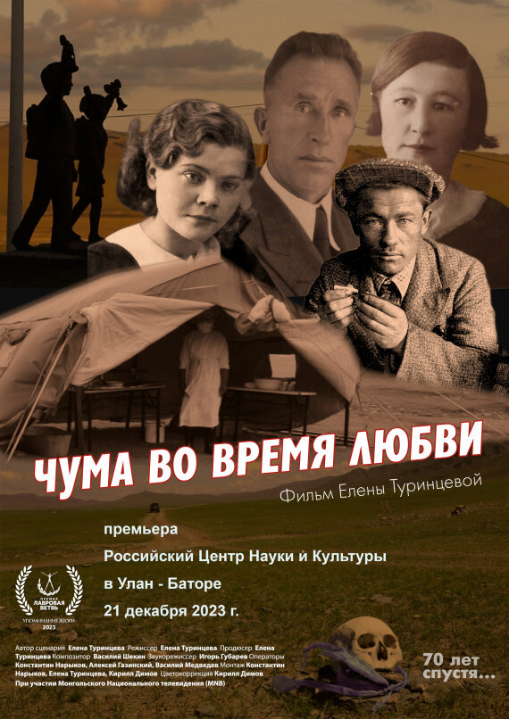 Премьера фильма "Чума во время любви"Елены Туринцевой состоялась в Российском Центре науки и культуры в Улан-Баторе 21 декабря 2023. Она была организована при поддержке посольства в этой стране.