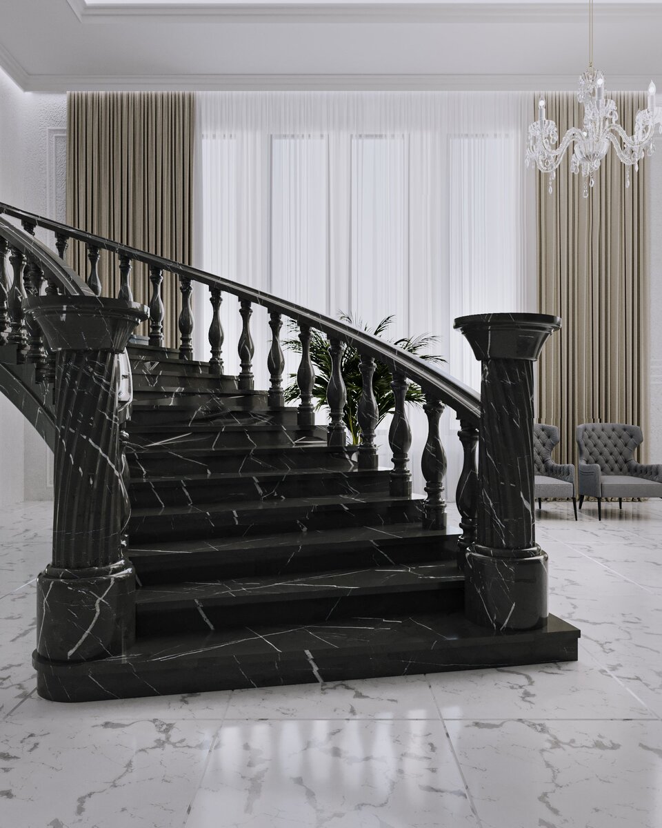 Узнать больше о сортах и свойствах натурального и искусственного камня, используемого для изготовления элементов лестниц, выбрать камень и оформить заказ на исполнение ступеней можно в шоу-румах компании «Мир кварца».