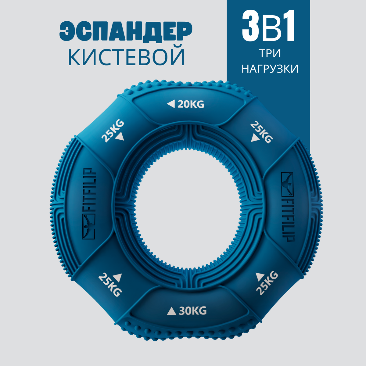 Трёхсторонний кистевой эспандер FITFILIP нагрузка 20-25-30 кг