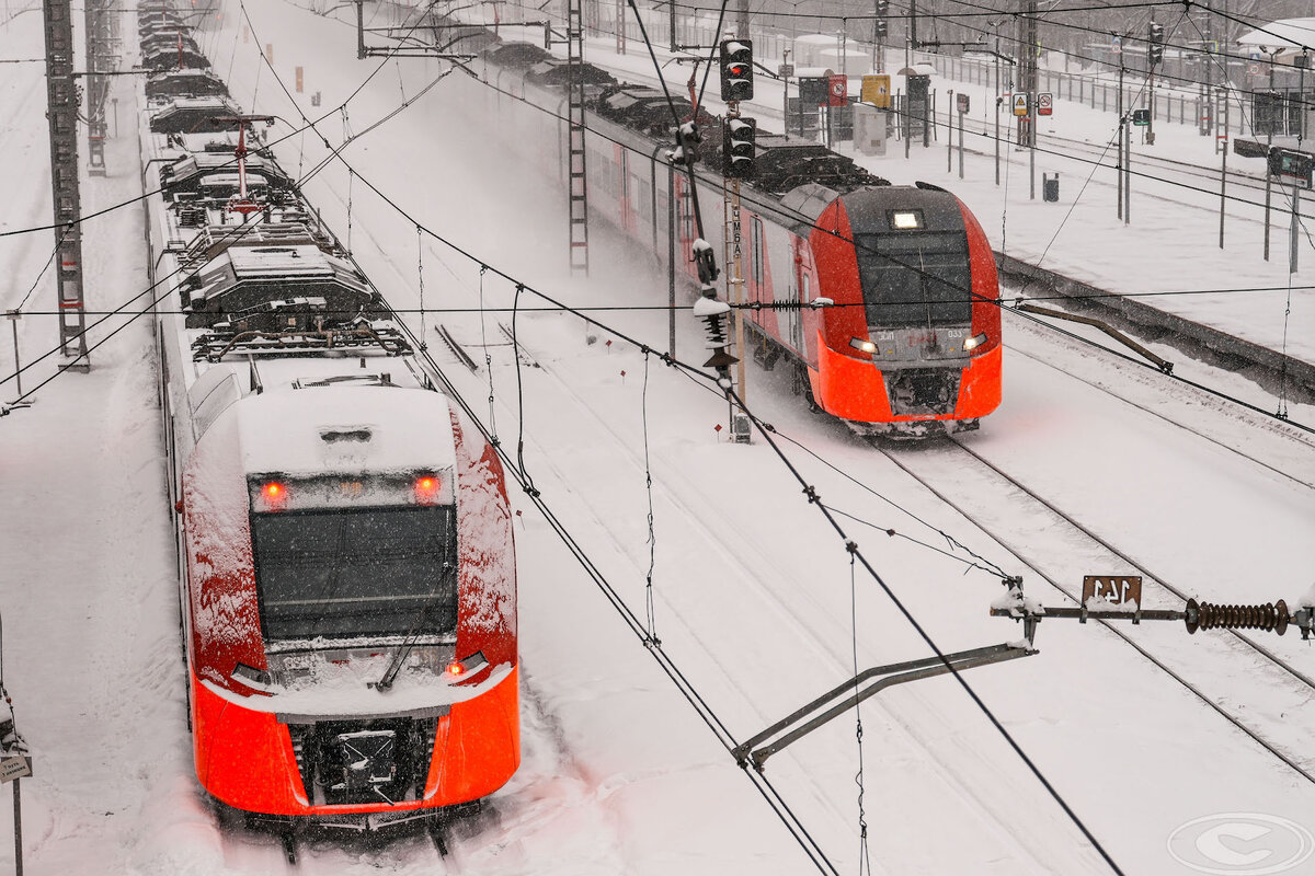 Ну что, друзья, неплохо сегодня поднакидало нам снега в столице, а ожидают еще и морозы дней на десять вперед, так что веселье только начинается. Тяжело придется и общественному транспорту в целом, и электротранспорту в особенности: где-то ТЗУ импортное замерзнет, где-то контактная сеть обледенеет. Так что сервисным службам готовность номер раз... Однако есть и позитивные моменты. В такую погоду железные дороги выглядят как-то особенно. Проезжающий поезд окутывает платформы снежным бураном, обледеневший подвижной состав как кит, покрытый ледяной шугой. Ну и нам приятно видеть, как наша продукция, например, токоприемник "ЛA 19-СЭТ 160 1200" успешно справляется с поставленными задачами на электропоезде "Ласточка". В нашей компании есть не только ученые и инженеры, как видите, но даже фотографы, которые смело бросаются в снежную кашу, чтобы сделать пару интересных снимков подвижного состава. Например, эти "Ласточки" на станции Кусково "Четвертого диаметра". Кстати, вы знали, что в некотор