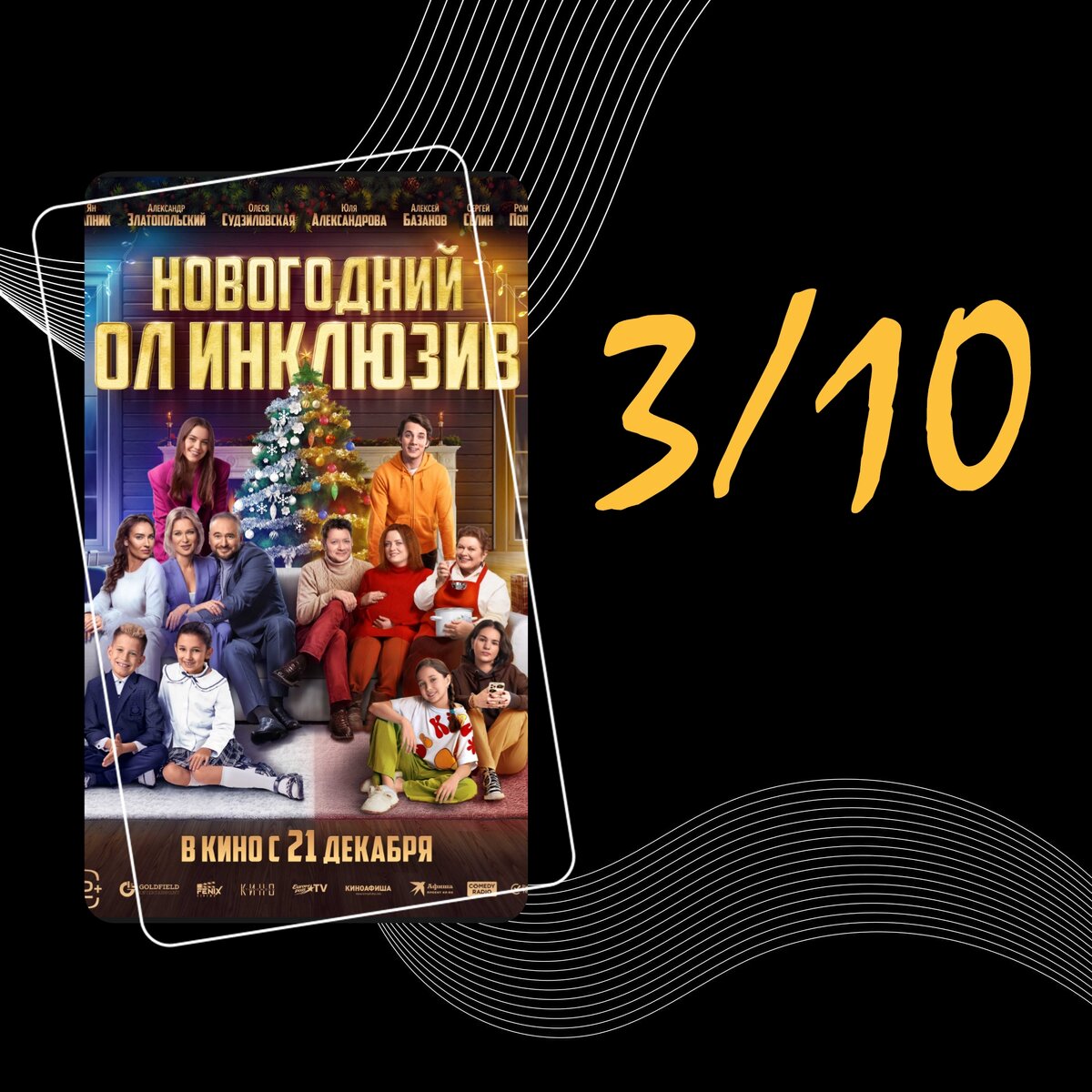 Россия, 2023, комедия, семейный, 12+ 31 декабря вся страна собирается отмечать Новый год. Две совершенно разные семьи тоже торопятся накрывать праздничный стол, открывать игристое и наконец-то отведать традиционный оливье, когда выясняют, что у них арендован один и тот же роскошный коттедж по системе «все включено». Отцы семей давно знакомы и не ладят, нужно решить, кто же останется в доме? Но именно в эту ночь в том же районе полиция ищет беглых преступников, поэтому семьи не могут разъехаться и вынуждены провести время под одной крышей. Пока отцы конфликтовали, пропали дети. Теперь им нужно сплотиться: найти детей, принять роды, обезвредить преступников и доказать друг другу, что самое главное в жизни — семья. Режиссёр- Олег Асадулин. В фильме снялось достаточно много популярных актёров, которые частенько бывают в новых новогодних кинофильмах. Такие как- Ян Цапник, Олеся Судзиловская, Юлия Александрова, Роман Попов, Сергей Селин и другие. Могу сказать, что каждый справился со св