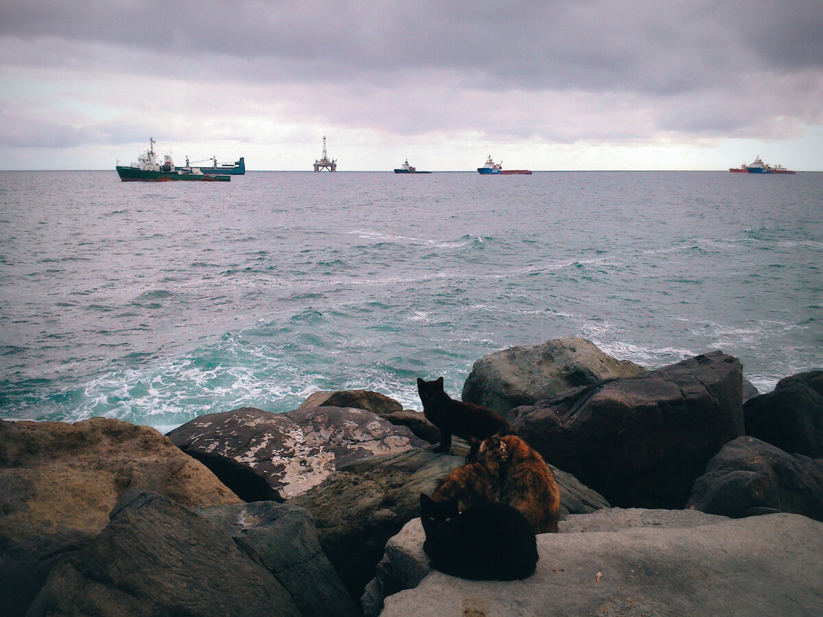 Котики есть везде.🐾 В Лас-Пальмасе котики живут среди больших камней на берегу океана. И мне почему-то это совсем не показалось романтичным. С одной стороны, на островах вечной весны всегда тепло. Значит, морозы пушистикам не грозят. И, конечно, котиков подкармливают. Я видела у них еду среди камней, которую явно они не сами себе приготовили. Нагретые солнцем валуны согревают озябших от влаги котиков. Грустные, грустные котики. Почему? Что за странный выбор места для проживания? Разве котики любят воду, если они не морские? Или это особенность канарских котиков? А, может, котики ждут... Что за ними приплывет большой корабль и отвезет их в кошачий рай. Бедные, несчастные котики. До чего печальные малютки!😢 Или мне так показалось? Мир такой большой и разнообразный, но так много мест, где живут несчастные бездомные котики. Надеюсь, однажды вы дождетесь своего большого счастливого корабля. P.S.: Не самый позитивный текст получился, но решила оставить как есть для истории: написано мною