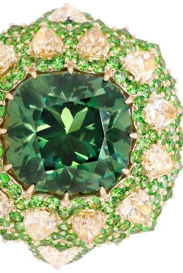 Первоначально считавшийся перидотом, этот драгоценный камень оказался зеленым андрадитовым гранатом и был назван «демантоидом» из-за его способности сверкать ярче бриллианта.