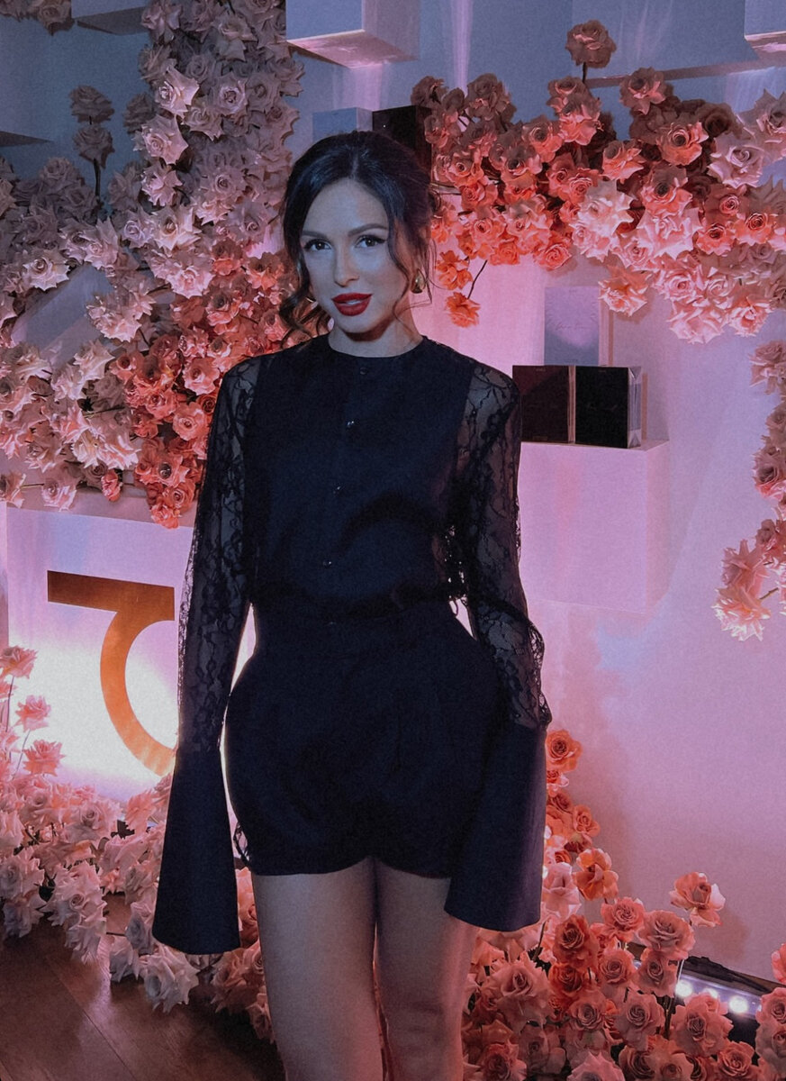 Певица Нюша пришла вечеринку по случаю запуска нового парфюма. Снимками в вечернем образе она поделилась в соцсетях. Нюша позировала перед камерами в коротких шортах и черной блузе с рукавами из кружева. Волосы ей уложили в низкий пучок и сделали вечерний макияж. Певица также продемонстрировала загар после отпуска на Мальдивах, отказавшись в образе от колготок. Поклонники отметили, что артистка после отпуска значительно похудела и уже не раз писали об этом в комментариях. «А отпуск вам к лицу», «Выглядите потрясающе», «Стройная и стильная», — написали пользователи соцсетей. Певица вышла замуж за бизнесмена Игоря Сивова в августе 2017 года. Свадебная церемония пары состоялась на Мальдивах. На торжестве присутствовали только родные и близкие влюбленных. Нюша объявила о своей беременности в мае 2018-го. В ноябре того же года певица родила супругу дочь в Майами. Пара назвала девочку Серафимой-Симбой в честь главного персонажа их любимого мультфильма «Король Лев». В декабре 2021-го у артист
