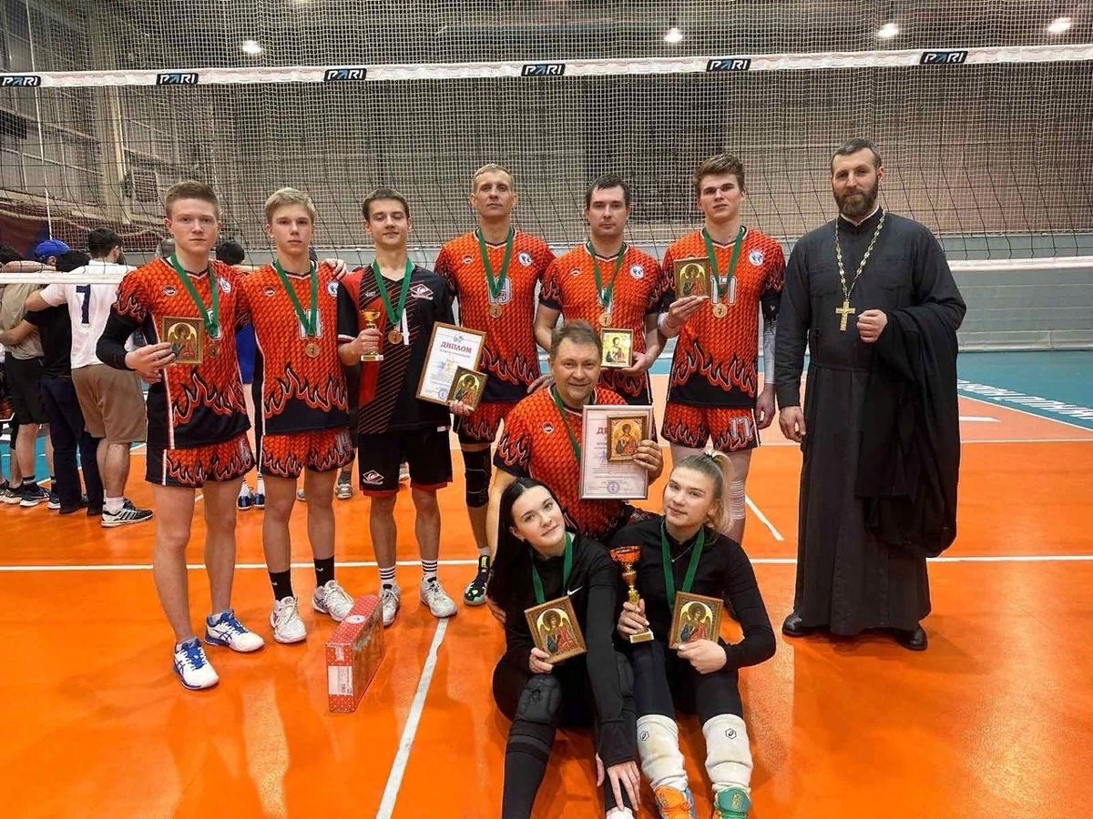 "В Фоке «Заречье» состоялся традиционный турнир по волейболу среди мужчин и чуть-чуть женщин на призы Нижегородской Епархии! Девять команд, торжественное открытие в лучшем зале волейбола Нижегородской области вселило уверенность и заставило гордиться причастностью к Большому спорту многочисленных участников и зрителей турнира! «Ничто человеческое им не чуждо!» Рассудительные, благородные и честные… Это я про представителей Епархии и Благочиний нескольких районов области и города! А уж когда некоторые из них, переодевшись, вышли на площадку играть, моему удивлению, да и всех присутствующих не было предела!!! И это
