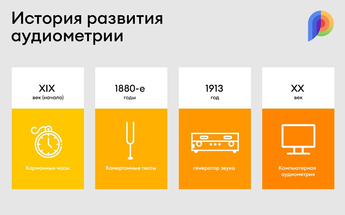 История началась в XIX веке. Тогда для проверки слуха использовались карманные часы. Происходило это так: часы тикали, пациенты прислушивались. А врачи делали записи, на каком расстоянии пациент слышит часы. Это была первая попытка количественно измерить слух, но точность измерения была низкой. В 1880-х годах появились камертональные тесты. Камертоны — это специальные металлические устройства, которые издают звук определенной частоты. Врачи использовали их, чтобы определить, на какой частоте пациент может услышать звук. Они медленно приближали камертоны к ушам пациента и записывали результаты. Для высоких частот использовались дудки. Врачи прикладывали дудку к уху пациента и измеряли, какие частоты он может услышать. Камертоны и дудки были более точными методами измерения по сравнению с карманными часами. Тем не менее они были ограничены в частотном диапазоне. Все изменилось в 1913 году, когда немецкий врач и ученый Генрих Адольф Ринне изобрел первый генератор звука для аудиометрии. Эт