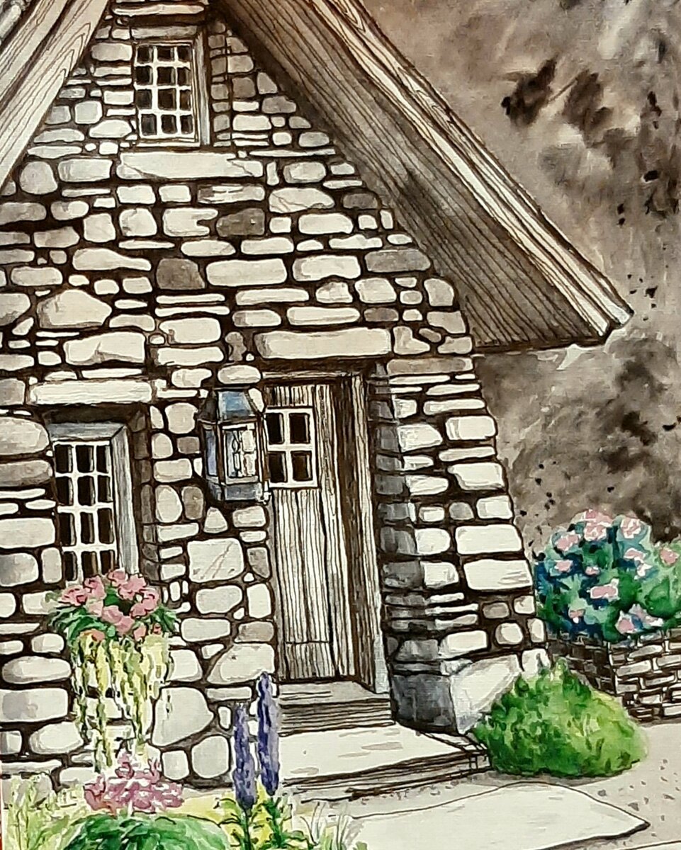 Домик в Провансе. Иллюстрация.Бумага А4.Тушь+акварель+капиллярные ручки.