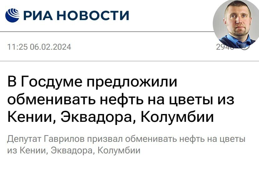 Здравствуйте, товарищи! Ой, а помните, как еще в прошлом году мы дружно мечтали…Ну, тогда мы поставили Индии нефть, а она с нами расплатилась…расплатилась…да простым человеческим – спасибо – она расплатилась, а на сдачу – и всего вам хорошего – сказала. А мы тогда так мечтали…так мечтали! Мечтали, что она расплатится с нами сарями, мы пригласим Митхуна Чакроборти, и всей пенсионерской частью нашей страны как зажжём в индийском танце! Джимми, Джимми, ача, ача! Не срослось. Но! Не переживайте! Теперь еще лучше будет! Оно же как получилось? Мы у Эквадора покупали бананы. А потом мы с ними поссорились. И теперь Индия кричит – покупайте бананы у нас, мы все-равно их выкидываем. И наша Дума такая – да! да! давайте! Правильное решение! И давайте думать дальше. Господин Володькин, а, чтобы вы еще предложили в виду открывшихся шикарных перспектив? О, Господи! О, Господи! Что же нам еще надо? У нас же все есть. А что предлагают партнеры по бартеру? - Цветы. – Цветы? Гениальное решение! Просто ге