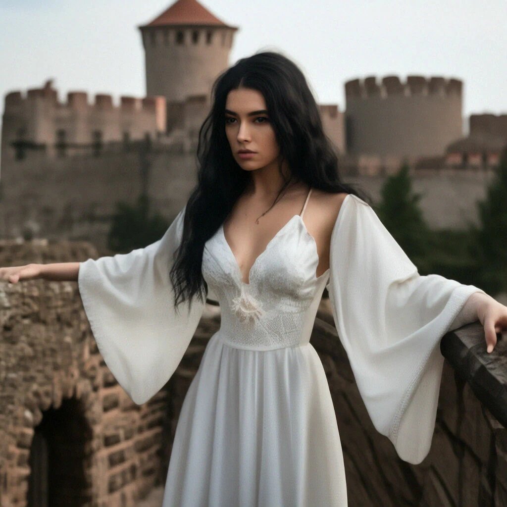На стену, придерживая длинное, белоснежное платье, поднялась принцесса.