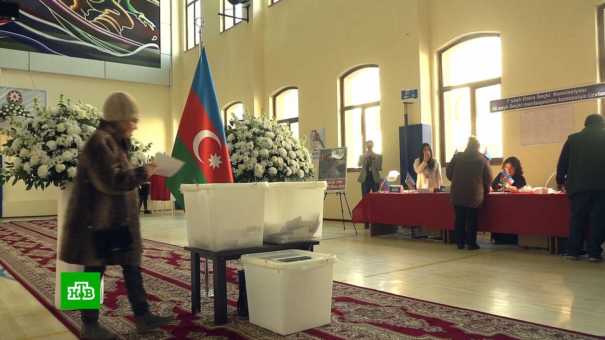 [ Смотреть видео на сайте НТВ ] Владимир Путин поздравил своего коллегу Ильхама Алиева с переизбранием на пост президента Азербайджана. Об этом сообщили в пресс-службе Кремля. Также главы государств в телефонном разговоре условились о продолжении личных контактов. Подсчет голосов в Азербайджане еще не окончен, обработаны данные почти со всех избирательных участков. По последней информации, Ильхам Алиев набрал чуть больше 92%. Согласно Конституции Азербайджана, избранным считается кандидат, за которого в первом туре проголосует больше половины избирателей. Но интрига на этих внеочередных выборах была не в том, кто станет новым лидером республики, а в том, сколько процентов наберет в итоге Ильхам Алиев. Если больше 90%, то будет новый рекорд. Меньше чем через сутки после завершения голосования результат, который многим был очевиден еще до открытия избирательных участков, наконец, приобрел финальные очертания. Мазахир Панахов, председатель Центризбиркома Азербайджана: «На текущий момент Ц