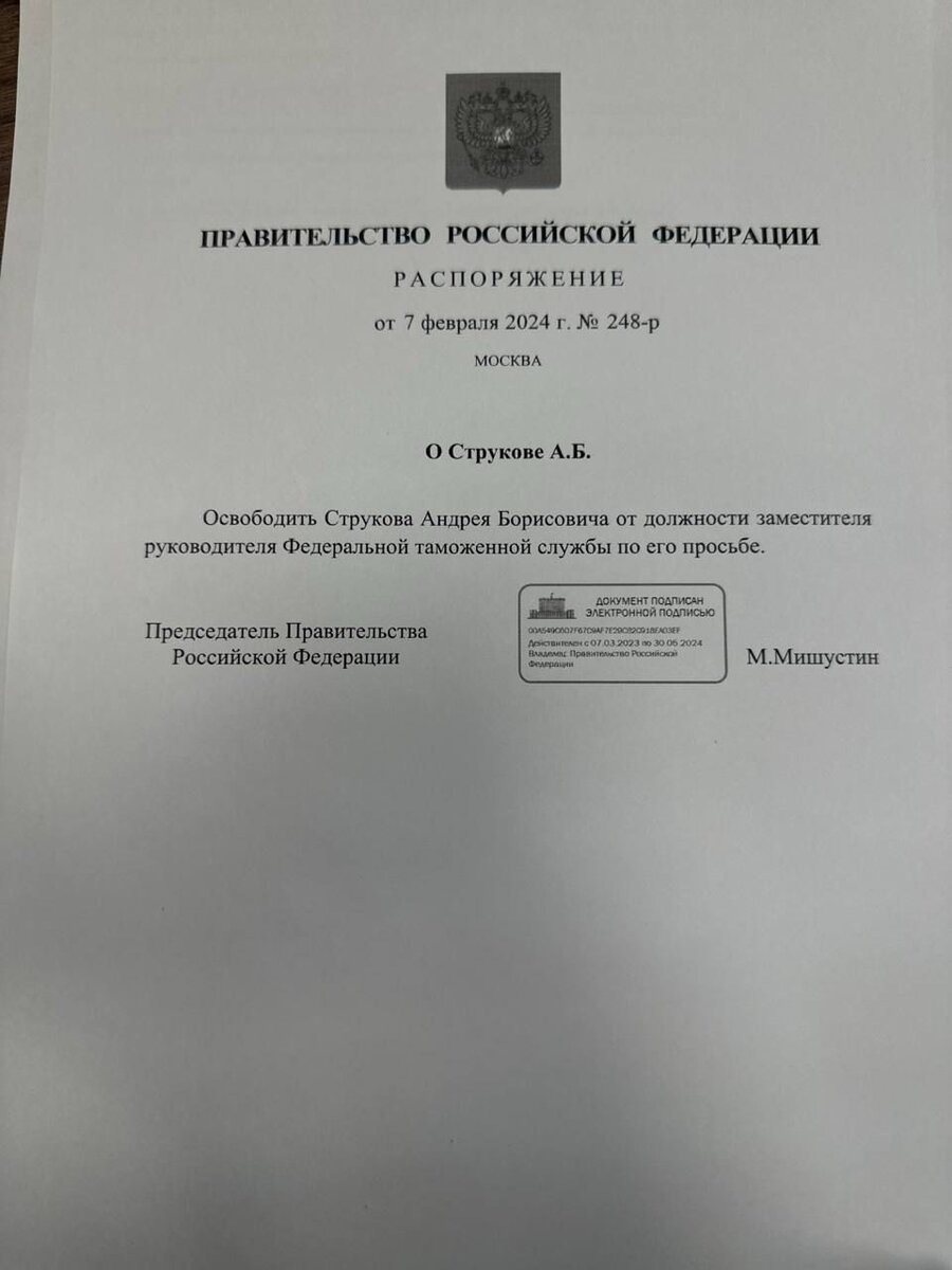 5 февраля в Сети появилось видео, на котором был запечатлён Завгородний в отделе полиции. Мужчина, судя по кадрам, был пьян и вёл себя грубо, матерясь и угрожая сотрудникам увольнением. Струков Андрей Борисович Заместитель руководителя Федеральной таможенной службы Родился 21 января 1977 года в Москве. В 1998 году окончил Академию Федеральной службы безопасности Российской Федерации. С 1998 по 2003 г. - служба в ФСБ России. С 2003 по 2005 г. – работа в ФГУП «Рособоронэкспорт». С января 2005 по май 2006 г. - заместитель начальника Управления делами – начальник отдела правового обеспечения, начальник Управления делами, Федеральная служба по оборонному заказу (Рособоронзаказ). С мая 2006 г. - начальник Правового управления, Цен