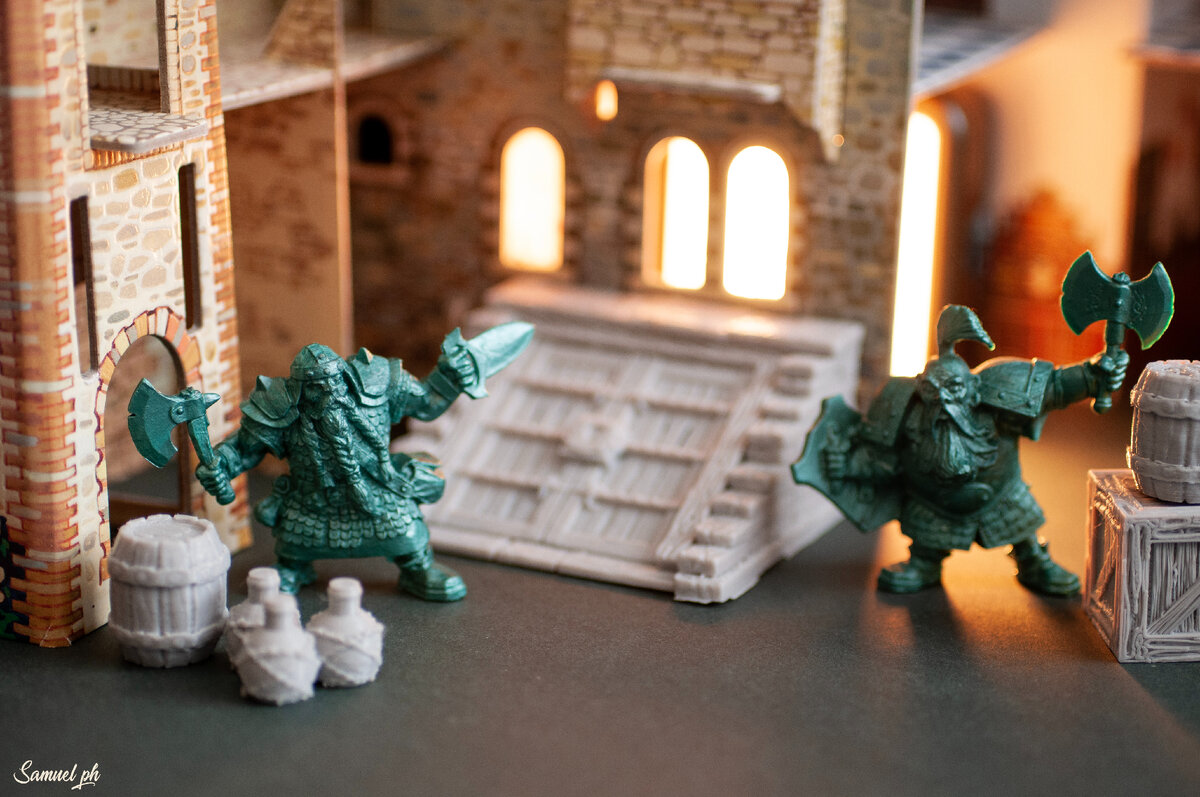 Всем привет, уже более 3х месяцев назад как я решил приобрести для себя 3д принтер и начать постигать эту науку. Об этом я рассказываю подробнее в видеоролике ниже, а тут я вам покажу что уже успел напечатать. Это одна из партий средневековых распечаток. Зеленые фигурки гномов, это фигурки из набора Технолог. А все что вы видите из серого пластика это собственно и есть напечатки. Самая длительная печать была около 3 часов, двери в подвал. Вся остальная мелочь это вопрос 7-23 минут. Посмотреть ролик и подробнее узнать нужно ли вам это или нет вы можете на моем канале))