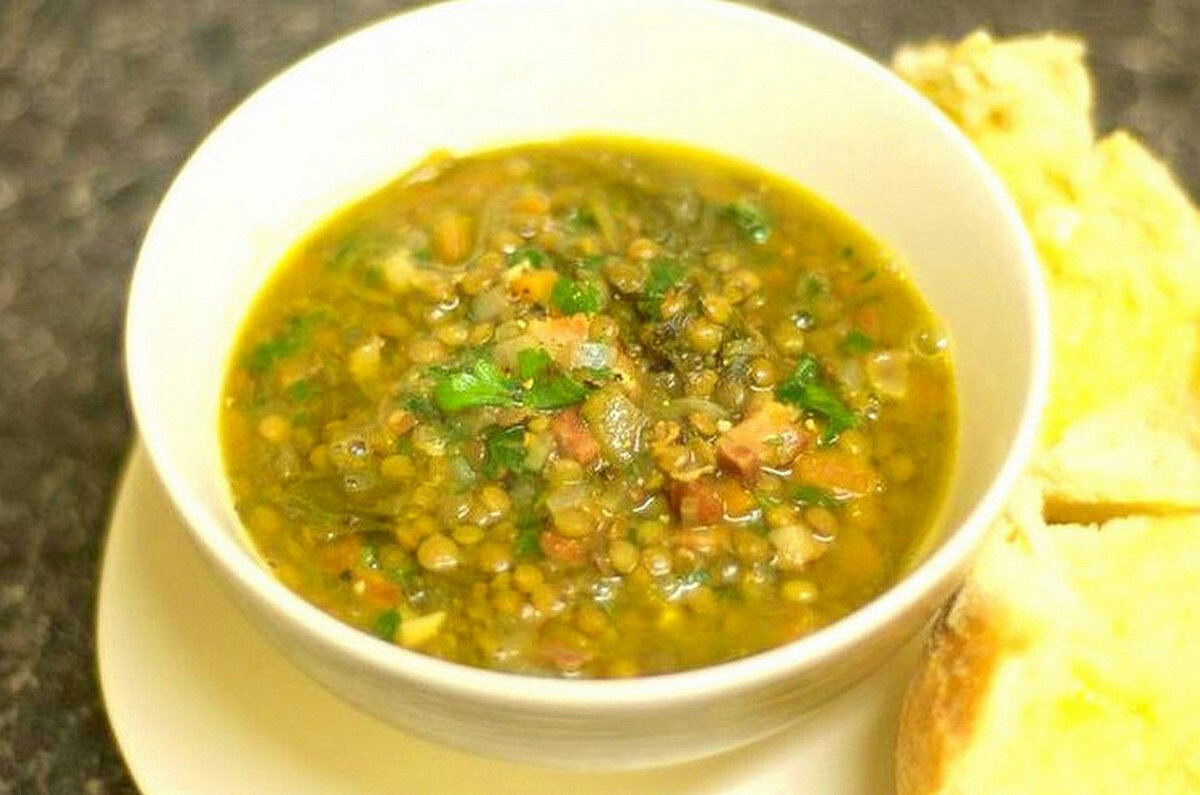 Полезный суп из зеленой чечевицы Чечевица - уникальный по пользе продукт. Она богата растительным белком и углеводами. Блюда из зеленой чечевицы получаются сытными и легкими одновременно. Их можно включать в меню для страдающих диабетом. Попробуем приготовить чечевичный суп и оттенить его вкус сельдереем и баклажаном. Ингредиенты: Чечевица -100 г Картошка - 400 г Баклажан - 300 г Морковь - 100 г Репчатый лук - 100 г Растительное масло - 3 ст. л. Лимонный сок - 0.5 ст. л. Сушеный чеснок - 0.5 ч. л. Соль - по вкусу Черный перец молотый - по вкусу Стебель сельдерея - 1 шт. Для подачи, по желанию, зелень и сметана. Чечевицу сначала надо перебрать и промыть. Лук и морковь почистим. Лук и сельдерей мелко нарежьте, морковь натрите на крупной терке. Картофель почистим и порежем крупными кубиками. Лук обжарим на сковороде до прозрачного цвета 1-2 минуты, введём морковь и сельдерей. На второй сковороде подрумяним картофель до золотистости и добавим баклажан., продолжим обжарку в течение 5-7 мину