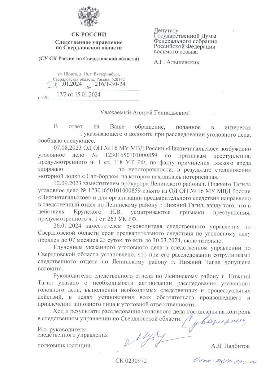 Они заволокитили расследование трагедии, которая произошла прошлым летом на акватории городского пруда. Тогда моторная лодка сбила сапбордистов.Региональный Следком потребовал у подчиненных, чтобы активизировали проверку.