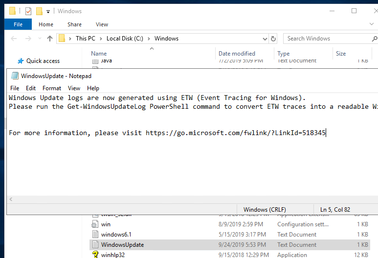 For more information, please visit http://go.microsoft.com/fwlink/?LinkId=518345Windows Update logs are now generated using ETW (Event Tracing for Windows).