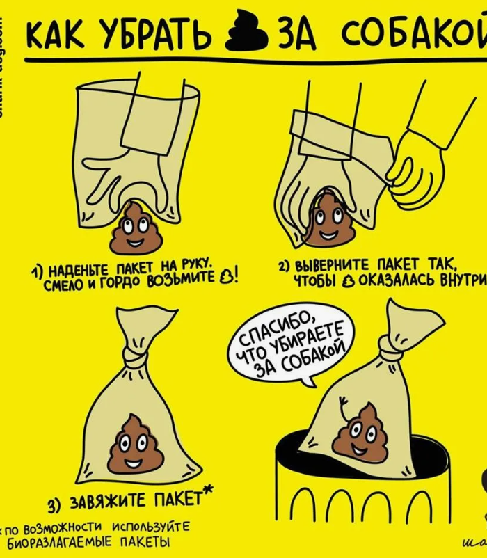 Очередной гневный пост в поселковом чате: "Собачники, ну етить колотить, вы собаку из дома вывели, чтоб у вас чисто было, а то что она навалила напротив чужого дома на дороге, вам пофиг! Убирайте говно за вашими собаками или вам убеждения с верой не позволяют?!" (орфография сохранена) И знаете, мне тоже было бы неприятно вляпаться в дерьмо на дороге или обнаружить чужие испражнения около своей придомовой территории. Идя на прогулку с собакой, держите в кармане небольшие пакетики. Ведь сегодня ваш сосед попадет в "мину", которую оставила ваша собачка, а завтра, возможно, и вам не повезёт... И напоследок фраза из просторов интернета, которая меня посмешила - "Заметил, что в моем доме живут только кот и собака. А я прихожу к ним, чтобы покормить и выгулять перед сном." Всем хорошего дня!