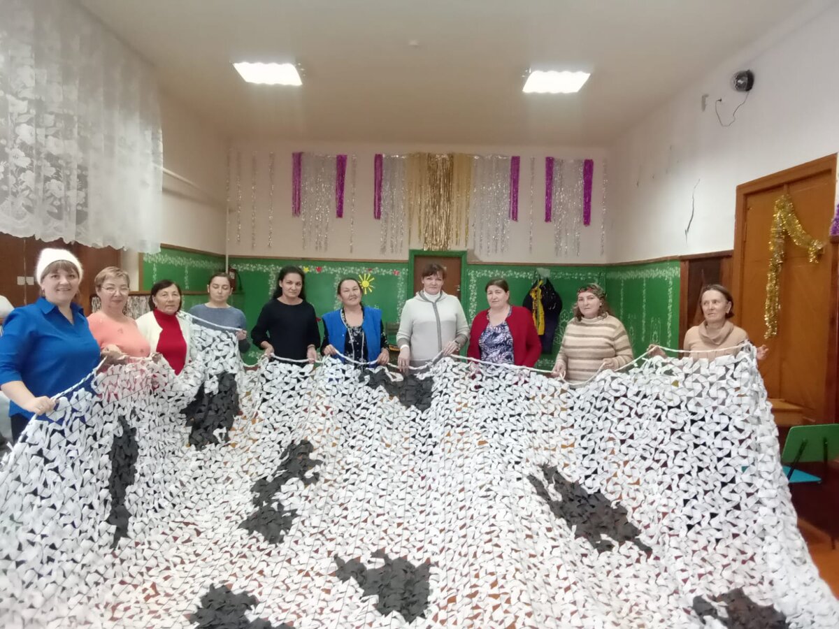 В селе Михайловка активистки вяжут маскировочные сети, которые так необходимы бойцам в зоне проведения СВО. Потребность в маскировочных сетях очень высока. В селе Михайловка активистки вяжут маскировочные сети, которые так необходимы бойцам в зоне проведения СВО. Гульназ Кириллова, Наталья Прокопьева, Людмила Родионова, посетив мастер-класс по плетению маскировочных сетей в селе Кош-Елга, в своем сельском клубе организовали пункт плетения маскировочных сетей. Самым главным для плетения сетей является деревянный каркас. В этом нам помогли Александр Иванов и Виктор Прокопьев — мужчины с большим сердцем, они откликаются на все просьбы помочь. Начали плести маскировочные сети с марта 2023 года. И в фойе клуба закипела работа с утра до вечера. Приходили группами из организаций (больница, средняя школа, школа-интернат, детский сад).