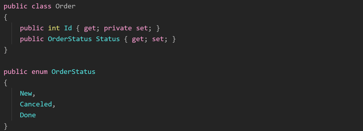 Для примера представим, что наша сущность - это заказ, у которого есть статус: Тогда обработчик изменения статуса заказа будет выглядеть примерно так: При выполнении последней строки в БД пойдёт запрос, обновляющий свойство Status у сущности, примерно такой: Проблема Что будет, если два пользователя системы одновременно вызовут этот метод для одного и того же заказа, но указав разный целевой статус? Оба запроса будут обрабатываться в разных потоках, оба достанут order со статусом New, потом обновят значение статуса на желаемое (в одном потоке на Canceled, а в другом на Done), оба сохранят свои изменения, и завершатся успехом.