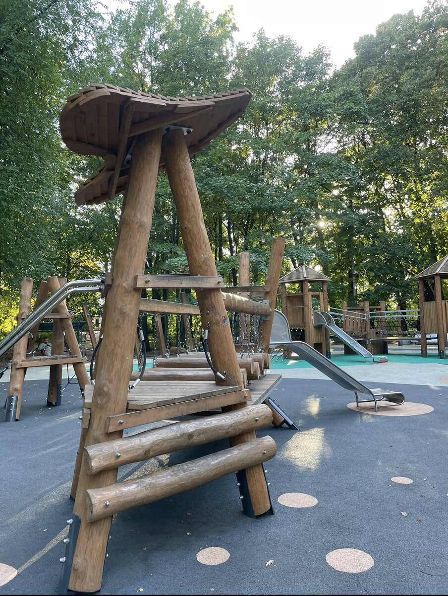 В прошлом году тут сделали очень симпатичную детскую площадку.