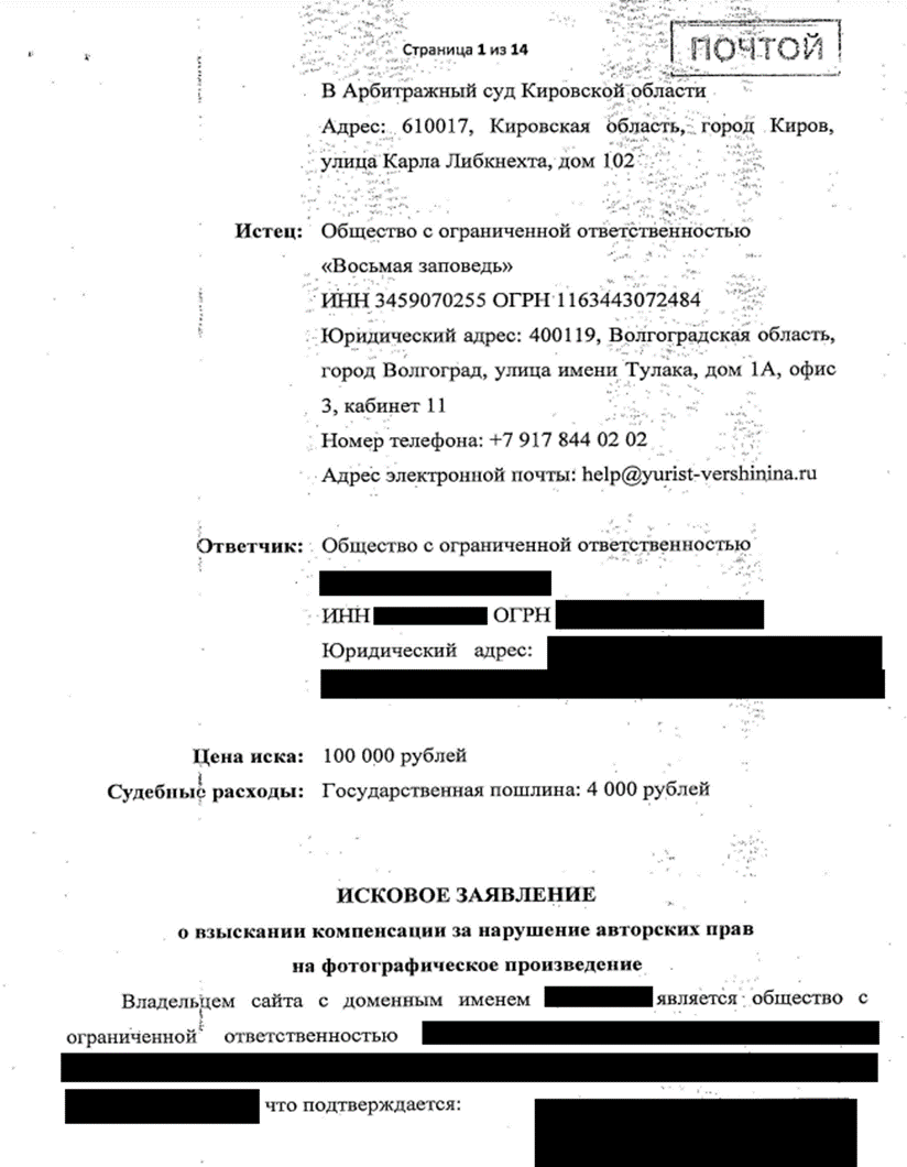 В первую очередь, необходимо тщательно проанализировать полученные документы, а именно текст претензии или искового заявления. В обозначенных документах полномочные представители "Восьмая заповедь" идентифицируют и прилагают конкретное изображение, в отношении которого, по их мнению, произошло нарушение авторских прав. В дополнение к претензии или иску обычно прилагаются доказательства, подтверждающие факт нарушения, такие как скриншоты.