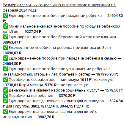 О февральской индексации социальных выплат рассказали в КСП Челябинской области, напомнив, что повышение было проведено с 1 февраля, в рамках исполнения постановления правительства РФ. В большинстве своем, повышение ориентировано на людей с ограниченными возможностями, ветеранов боевых действий, участников Великой Отечественной войны, а также граждан пользующихся правом на федеральные льготы. Так, изменения коснулись 11 отдельных социальных выплат, в числе которых единовременное пособие при рождении ребенка, пособие по безработице, на погребение и т.д. Самая большая сумма при выплате единовременного пособия – при усыновлении ребенка с инвалидностью, старше 7 лет, братьев и сестер, которое с учетом индексации составляет 187996,90 рублей. Подробнее можно увидеть на фото. Стоит добавить, что индексация затронула и материнский капитал. Максимальное повышение произошло у южноуральцев, которые пока ни разу не распоряжались его средствами. Повышение составило 43,4 тысячи рублей, таким образом