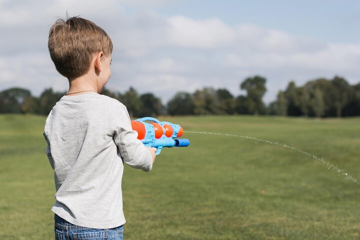 Этап игр в «войнушку» проходят все мальчишки. Интереснее и увлекательнее сделает ее детский пистолет, стреляющий мягкими шариками, стрелами-липучкам или мыльными пузырями. Минут пятнадцать такой беготни — и ребенок выплеснет лишнюю энергию, зарядится хорошими эмоциями, здорово повеселится, особенно, если это будет «сражение» с родителями, а там, глядишь, и книжку согласится почитать.