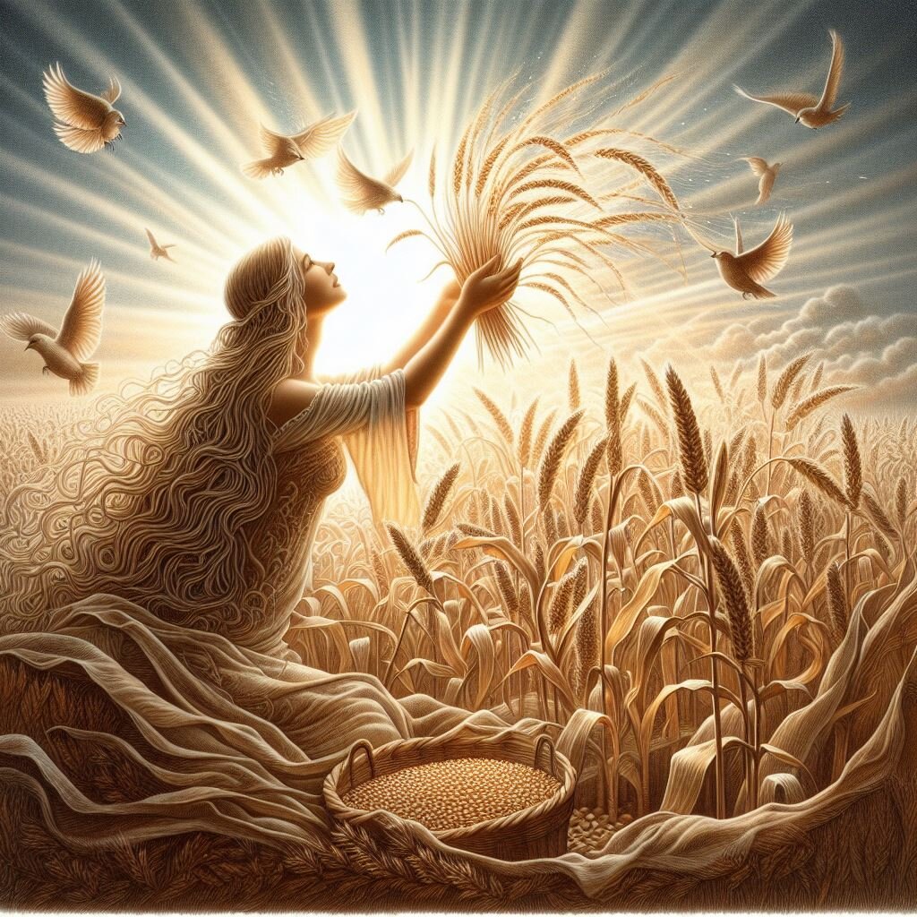 От Колоса до Соломы: Удмуртская Легенда о Хлебе и Верности В самом сердце Удмуртии, на просторах бескрайних полей, хранится древняя легенда, рассказывающая о временах, когда хлеб был не таким, как сегодня. Это история о могуществе природы, человеческой неблагодарности и неожиданной героической роли, которую сыграла собака, ставшая символом верности и сострадания. Давным-давно, в эпоху кылдысина, хлебные злаки были иными: кустистыми, высокими, и по всей длине стебля раскидывались плодоносные колосья, начиная практически от самой земли. Это было время изобилия и уважения к дарам природы, когда кылдысин, мифическое существо удмуртской мифологии, жил среди людей и поддерживал их. Однако, как часто бывает, человеческая неблагодарность и неосторожность привели к катастрофе. В день празднования урожая ржи, в жаркий летний день, женщины принесли на поля своих младенцев. Чтобы облегчить страдания детей от жары и поноса, они использовали наливающиеся колосья в качестве подгузников, не задумываяс