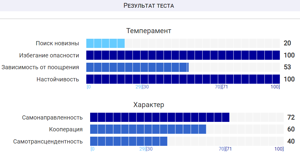 Низкий уровень Избегания вреда – высокая стрессоустойчивость, беззаботность, смелость, энергичность, общительность и оптимистичность.