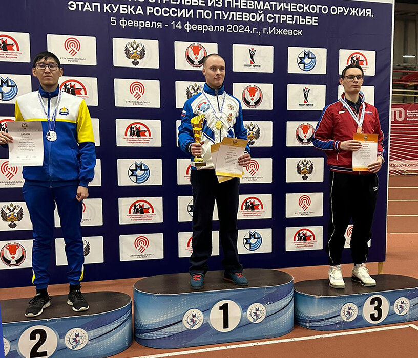 Иркутский спортсмен, заслуженный мастер спорта России Артем Черноусов стал чемпионом России по пулевой стрельбе. Чемпионат проходит в Ижевске. В нем принимают участие 420 спортсменов из 44 регионов страны. Иркутскую область представляют восемь стрелков. Об этом сообщает пресс-служба минспорта региона. Артем Черноусов завоевал золотую медаль в олимпийском упражнении – стрельбе из пневматического пистолета на 10 метров, его результат составил 580 очков. Серебро – у Тамира Бадмаева (Республика Бурятия), бронза – у Антона Аристархова (Московская область). На фото – призеры на церемонии награждения. Артем Черноусов является воспитанником областной спортивной школы олимпийского резерва «Приангарье» имени Л.М. Яковенко и занимается у Заслуженного тренера России Галины Корзун.