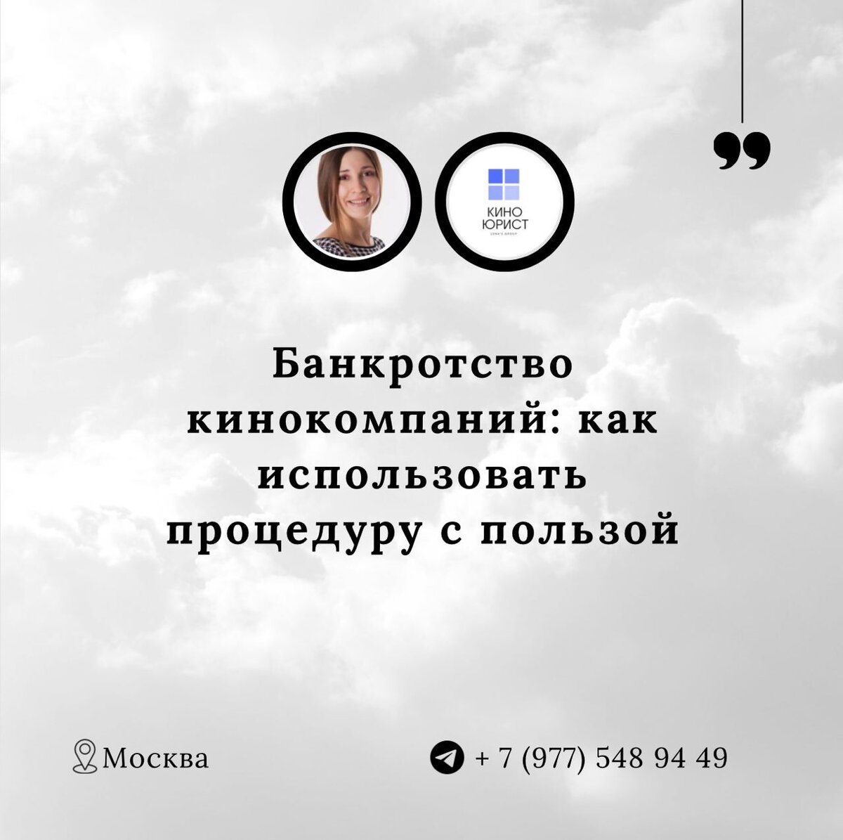 В свою очередь, у нас большая практика ведения процедур банкротства в сфере кино как на стороне киноработников, так и на стороне кинокомпаний. Именно поэтому хотелось бы просветить киномир относительно преимуществ, которые дает процедура банкротства, если ее грамотно применять.