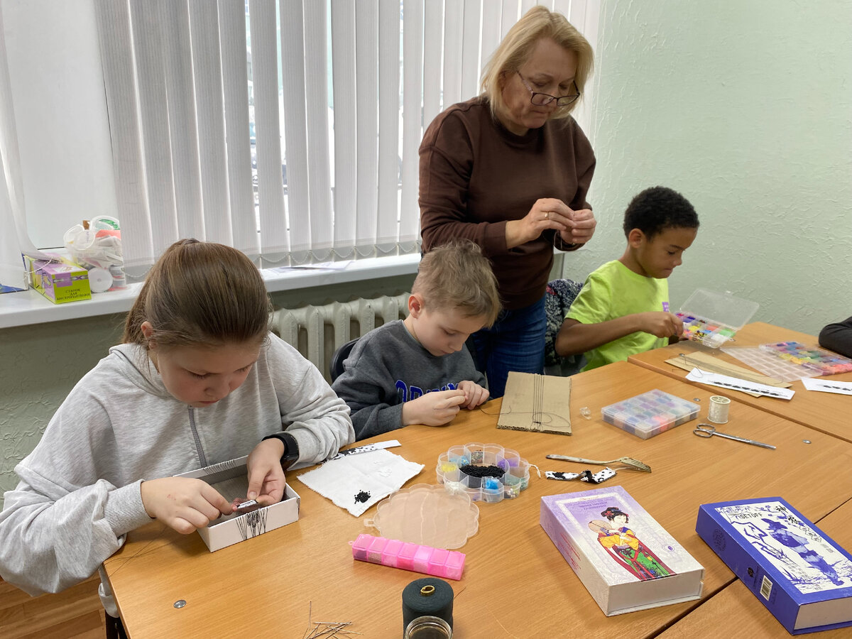 Сегодня в Тучковской детской библиотеке в рамках творческой студии «Волшебный бисер» начался цикл занятий «Браслет». Браслет плетётся в технике станочного ткачества. На первом занятии они натянули нитки на специальные станки, разобрали схему и новую для них технику плетения с иголкой. Работа требовала терпения и старания. #Волшебныйбисер