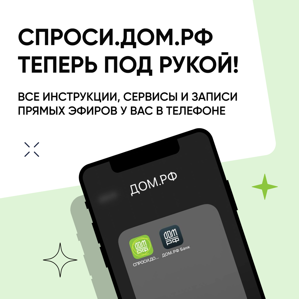 Настройте быстрый доступ ко всем инструкциям, сервисам и прямым эфирам спроси.дом.pф в один клик При этом дополнительно скачивать ничего не нужно. 🍏 Инструкция для IOS: 1. Зайдите на сайт спроси.дом.рф 2. Нажмите на значок «Поделиться» в окне браузера 3. Прокрутите вниз список действий, а затем нажмите «На экран "Домой"» Если действие «На экран "Домой"» не отображается, его можно добавить. Для этого прокрутите вниз список действий и нажмите «Редактировать действия», а затем — «На экран "Домой"». 🤖 Инструкция для Android: 1. Зайдите на сайт спроси.дом.рф 2. Нажмите на меню — три точки или полосочки в углу экрана 3. Нажмите «Добавить на главный экран» (формулировка может отличаться), и сайт спроси.дом.pф появится на рабочем столе вашего смартфона Ставьте реакции, если было полезно!