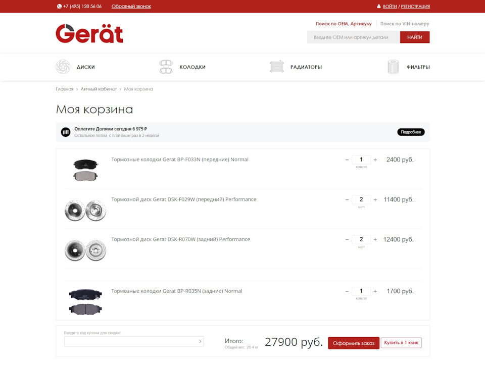 Всем привет 👋 На первом осмотре автомобиля меня предупредили, что скоро нужно будет менять колодки, а с ними и тормозные диски. На тот момент остаток колок был около 50%, и как вы уже догадались, сегодняшняя запись посвящена новым тормозулькам 👍 Долго думал, что взять. Изначально были мысли взять что-то простое и подешевле, но увидев диски с перфорацией от бренда Gerat, взял их почти не думая 😁👍 Также считаю, что на тормозах экономить точно не стоит и есть смысл сразу взять хорошие. ❗ Внимание ❗ Читая дальше, Вы столкнетесь с большим количеством красивых и качественных фото. Если вдруг Вы считаете, что в записях должно быть не более трех фото, сделанных на камеру "домофона", а также Вам кругом мерещится РЕКЛАМА, прошу Вас, закройте данную страницу… Всем остальным я бесконечно благодарен и рад каждому, погнали 😉👍 Также подкупила возможность оплаты частями (в рассрочку), через сервис "Долями"! Общая сумма делится на 4 части, и оплата происходит каждые 2 недели. То есть, я оформил з