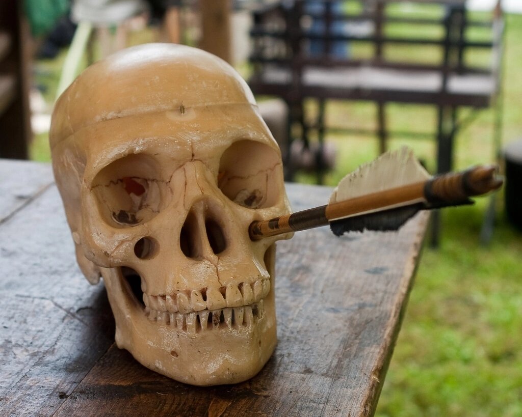 Делалось это просто: наконечник одевался на стрелу, если он слишком сильно болтался, то его предписывалось закрепить на древке стрелы при помощи расплавленного воска. Наконечник держался на стреле еле-еле, поэтому при попытке вытащить стрелу он легко соскальзывал и оставался в ране. Молодые храбрецы, что решались на подобное, быстро умирали от болевого шока прямо на поле боя. Выход здесь только один — проталкивать стрелу насквозь, чтобы можно было выдернуть её за наконечник и не нанести себе больших повреждений. Главное, чтобы на пути стрелы не оказались кости или сухожилия. Если на пути стрелы есть кость или сухожилие, то здесь придется поработать скальпелем, так как протолкнуть её не получится. Несколько ровных разрезов, чтобы расширить рану, а потом медленно извлечь древко. Если же оно отпало, то при помощи пинцета придется вытащить сам наконечник. Хирурги прошлого делали это медленно и не гнушались пользоваться ножами, чтобы не оставить наконечник в ране.