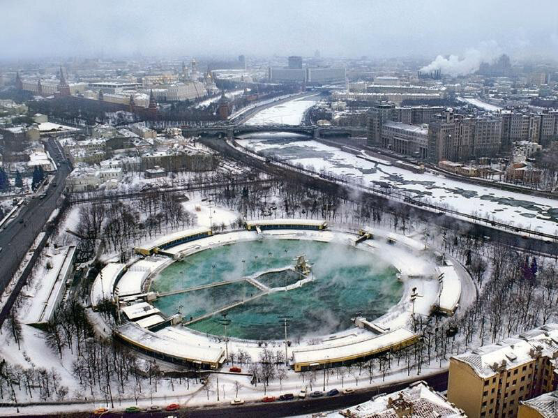 В 1960 году в Москве был отрыт уникальный объект - крупнейший в мире открытый бассейн "Москва". Бассейн был одним из моих любимых мест отдыха в Москве наряду с "Сандунами", Парком Горького , ЦДХ. Я служил в Москве в 1988-89 годах в Штабе на Фрунзенской набережной и бассейн был достаточно недалеко расположен от моей работы. Ну, а военная форма в те добрые советские времена служила этаким негласным пропуском не только на концерты или спортивные мероприятия, но нам удалось договориться с администрацией бассейна, чтобы нам как солдатам можно было бесплатно по утрам посещать бассейн. Уникальность этого бассейна состоит не только в площади купальной зоны 13 тысяч м²., но и в том, что комплекс был рассчитан на круглогодичный цикл работы. Больше всего мне нравилось плавать в бассейне в зимнее время года. От бассейна в мороз шло большое испарение и он весь был окутан густым облаком пара. Можно вылезти на бордюр ,растереться снегом и снова окунуться в теплую воду бассейна. В 1991 году бассейн за