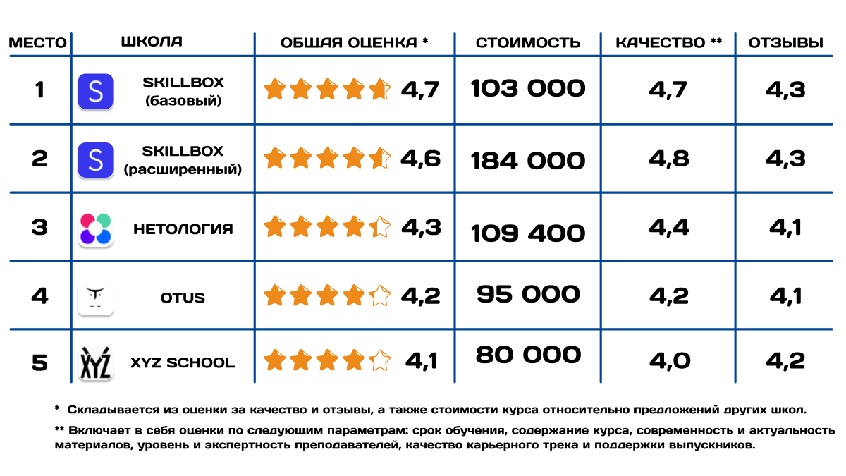 Мы постоянно работаем над улучшением наших обзоров и рейтингов курсов, чтобы они делали процесс выбора простым и понятным. Если вам не хватило какой-то информации, или у вас есть пожелания, как улучшить наши статьи, просим вас написать в комментариях что именно нам стоит изменить или дополнить. Мы чутко реагируем на обратную связь и обязательно добавим недостающую информацию!