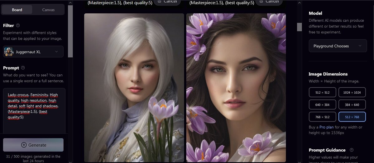 Друзья, на сегодня - промт, который понравится любителям нежных фиолетовых оттенков и ценителям женской красоты. Промт: Леди крокус, женственность, высокое качество, высокое разрешение, высокая детализация, мягкий свет и тени. (Шедевр:1.5), (лучшее качество:5) Ссылка на промт в нейросети Playgroundai: Оптимальные значения параметров, дающие более реалистичные изображения,на мой взгляд: А теперь любуемся очаровательными образами! Все эти изображения созданы мною в бесплатной нейросети Playgroundai. Друзья, если хотите узнать больше про ИИ, Метавселенные, Виртуальную Реальность, NFT, регистрируйтесь на 5-дневный бесплатный онлайн-тренинг А. Фридмана «Как выйти на $10 000 на NFT и Метавселенных»: <<<Зарегистрироваться на тренинг>>>