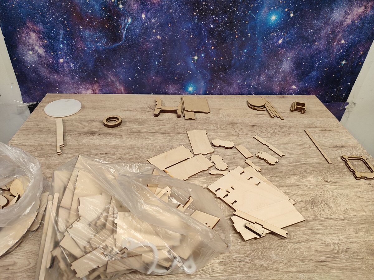 Приехал ко мне новый заказ резки. Ехал он долго, потому что я долго не могла его доделать, потом отдать, потом мне его не могли нарезать, потом могли, но был завал. И вот он у меня. Каждый раз, получая большие заказы, а тут еще были два почти одинаковых стола (от одного из которых, как позже выяснилось, не хватало деталей), я задумываюсь о том, что надо бы все детали делать на не до конца прорезанных шаблонах, как другие мастерские. Чтобы не разбирать все это вручную. Тут были и новые заказы. Например подиум к какой-то кукольной мебелюхе. Который почему-то оказался в двойном экземпляре. Обычно мастер переделывает детали, которые оказались бракованные, но тут не нашла недостатков. Ну, зато можно сделать двойную высоту ступеней. А вот это новый табурет, кинутый буквально "за полчаса до вылета". Он, внезапно, очень прикольный. Хотя всем больше показалось, что он похож на держалку для цветов. Табурет собрался легко и хорошо. Чего не скажешь об индивидуально заказанном офисном уголке. Дет