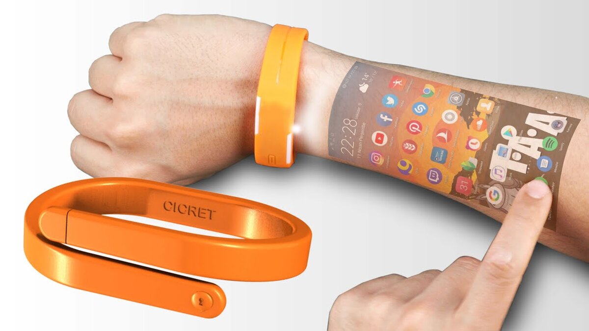 Проекционный браслет Cicret - это концепт носимого гаджета, который должен проецировать интерактивный сенсорный экран на кожу руки с помощью миниатюрного проектора и восьми датчиков приближения, встроенных в ремешок. Устройство также должно иметь Wi-Fi, Bluetooth, вибрацию, микро-USB, акселерометр, карту памяти и работать на базе искусственного интеллекта. Если бы проекционный браслет Cicret действительно существовал, он мог бы иметь следующие плюсы и минусы: Плюсы: - Удобство и мобильность. Устройство позволяет пользоваться своим смартфоном в любых условиях, не доставая его из кармана или сумки, а также не беспокоиться о том, что он упадет, разобьется или замочится. - Инновация и привлекательность. Устройство демонстрирует новый уровень технологического развития и вызывает восхищение и интерес у окружающих. - Функциональность и гибкость. Устройство позволяет выполнять все те же функции, что и смартфон, а также адаптироваться к размеру и форме руки пользователя. Минусы: - Техническая с
