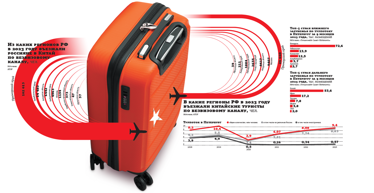 Для Петербурга, как для одного из главных туристических центров страны, это особенно актуально. В сентябре прошлого года председатель комитета по развитию туризма Санкт–Петербурга Сергей Корнеев делился оценками, что на восстановление допандемийных показателей китайского въездного туризма может понадобиться 3–4 года. В 2019 году город посетили 957 тыс. китайцев, в 2024 году поток, по прогнозам, может достичь в лучшем случае 30% от этих показателей.