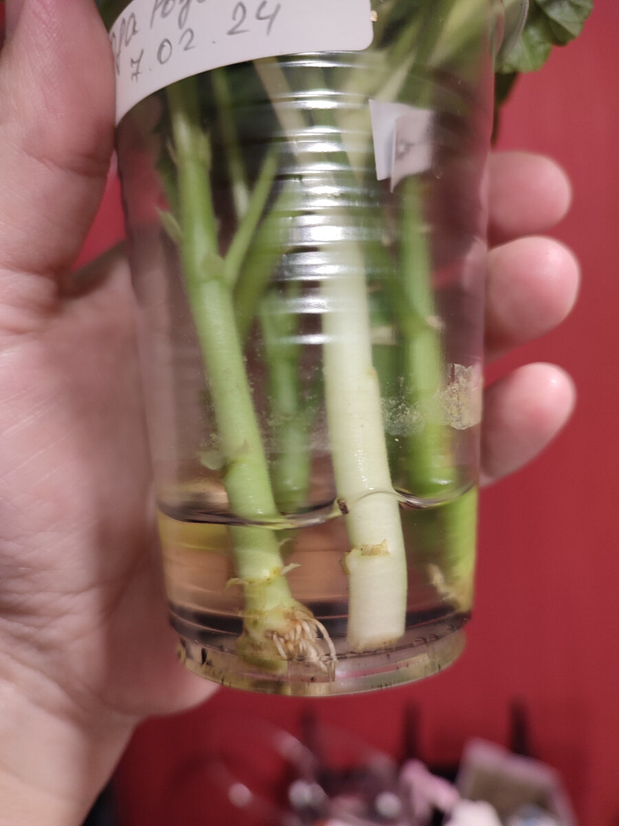 Черенок сорта Ода Розовое вино, с пяточкой, стоит в стаканчике вода+ уголь! В ночь с шестого на седьмое посажен, сегодня - ночь с восьмого на девятое первые корешки! Завтра сажаем его в грунт. Начало здесь https://dzen.ru/video/watch/65c330141b3de90bbaa7f4b1