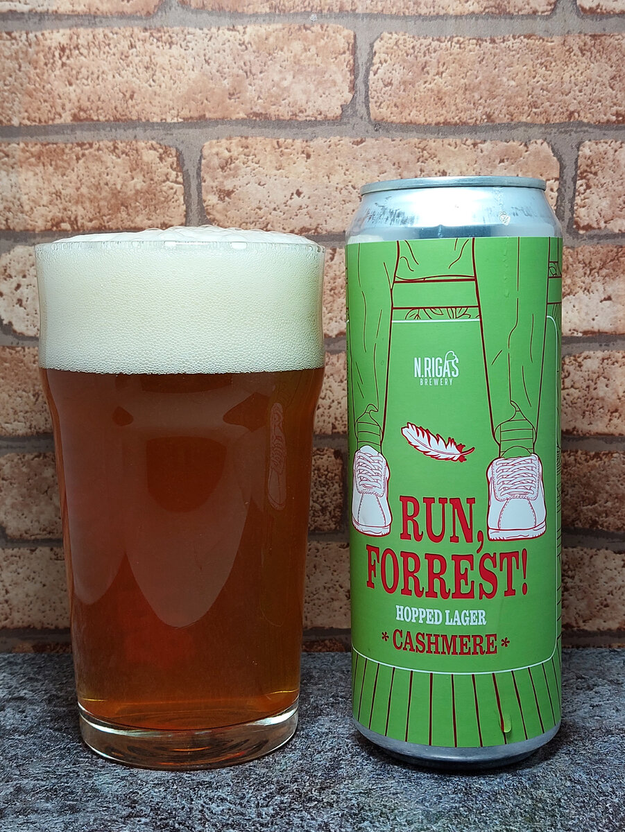 Не так давно пробовал Run, Forrest! А недавно во время посещения сетевого "Винлаба" встретил банку с аналогичным названием и припиской *Cashmere*. Этикетка оформлена так же, разве что в зелёном тоне. Ну в общем не было повода не взять. Изготовитель: пивоварня NEW RIGA'S (ООО "УК "Директория") из Московской области. На этикетке написано, что это охмелённый лагер. Все ТТХ совпадают: ЭНС: 12%; горечь: 30 IBU. Состав тот же: вода питьевая, солод пивоваренный ячменный, хмель, пивные дрожжи. На сайте пивоварни на момент написания публикации об этой версии пива я ничего не нашёл. В чём же отличие пива от обычной версии? И при чём тут кашемир? А при том, что речь идёт не о ткани из шерсти, а о хмеле, используемом при приготовлении. Честно признаюсь, не помню, чтобы хмель Cashmere попадался мне когда-либо. Напомню, что при приготовлении обычной версии использовалось три хмеля: Centennial, Chinook и Cascade. Тут же, как я понимаю, всего один. Тем интереснее будет попробовать и сравнить сво