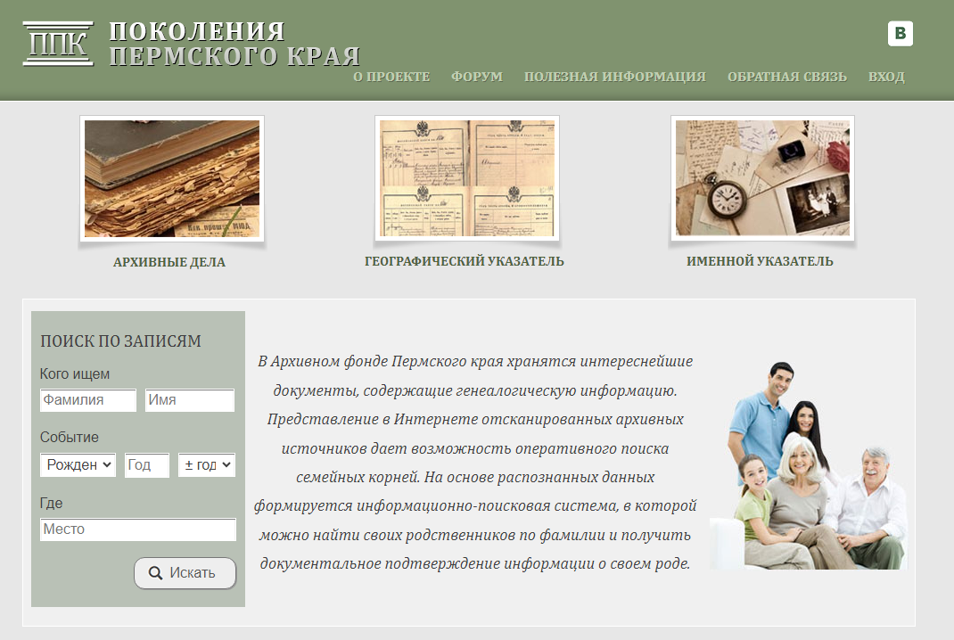 Предки моей мамы родом из Пермского края. Из Большесосновского района. И с изучением этой ветви мне очень повезло, потому что Агентство по делам архивов Пермского края и Государственный архив Пермского края в свое время запустили проект "Поколения Пермского края" - https://pokolenia.permkrai.ru/ На этом портале представлены электронные образы ревизских сказок и метрических книг Пермской губернии. На сегодняшний день отсканировано 4288 архивных дела с метрическими книгами, 796 архивных дел с ревизскими сказками и 15 дел с исповедальными ведомостями. В систему занесено 1752244 записи о рождении, браке и смерти населения Пермской губернии. При этом работа по наполнению базы данных продолжается, ведется ее корректировка и уточнение. А в перспективе проекта расширение функций по поиску родственных связей и составлению родословного древа. Для этого планируют создать многофункциональный Личный кабинет. На сайте есть быстрый поиск, но есть возможность искать отдельно по архивным делам, геогр